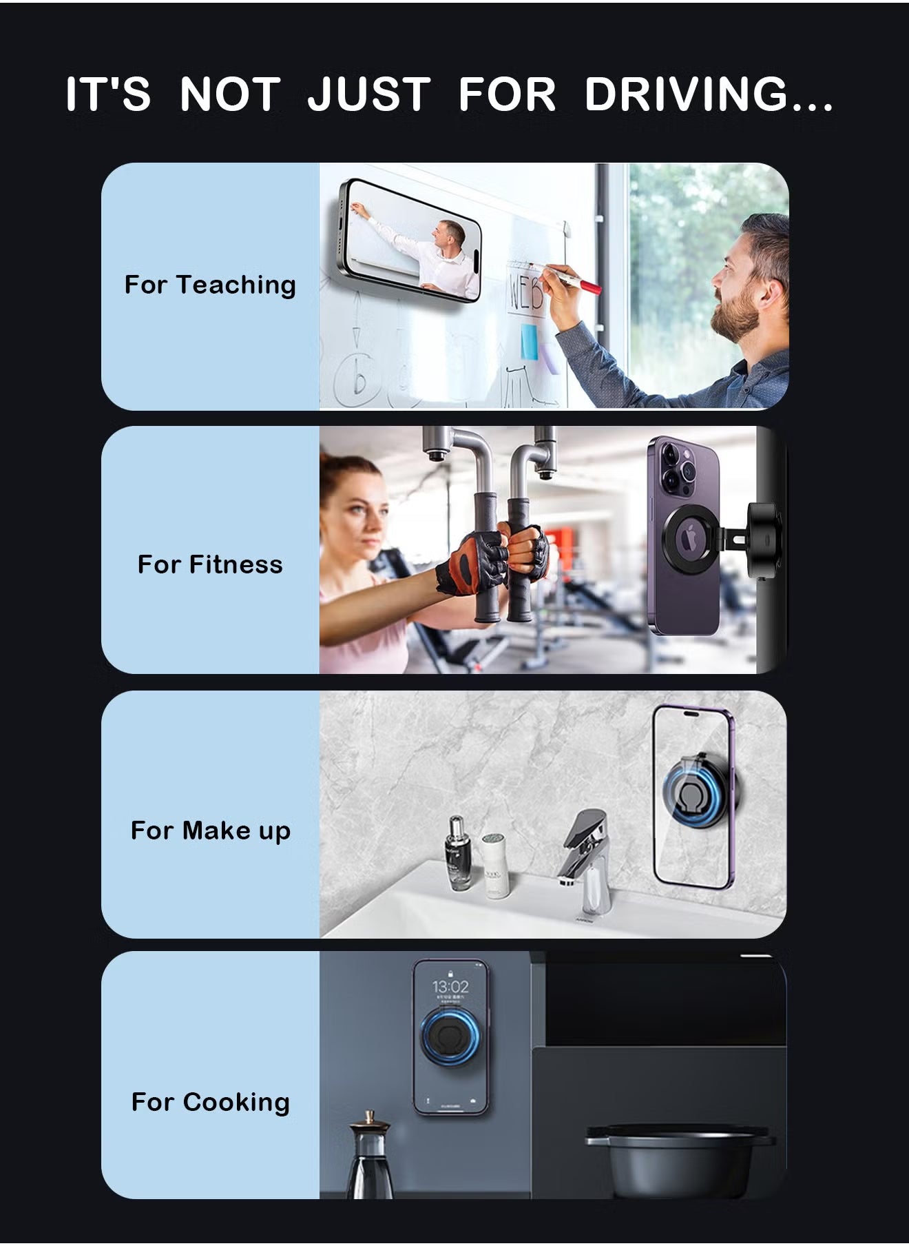 - Ultra-Strong Magnetic Grip: Equipped with upgraded N52 double magnetic rings, providing over 1000N of suction force for a secure hold, even on bumpy roads or during sudden braking.