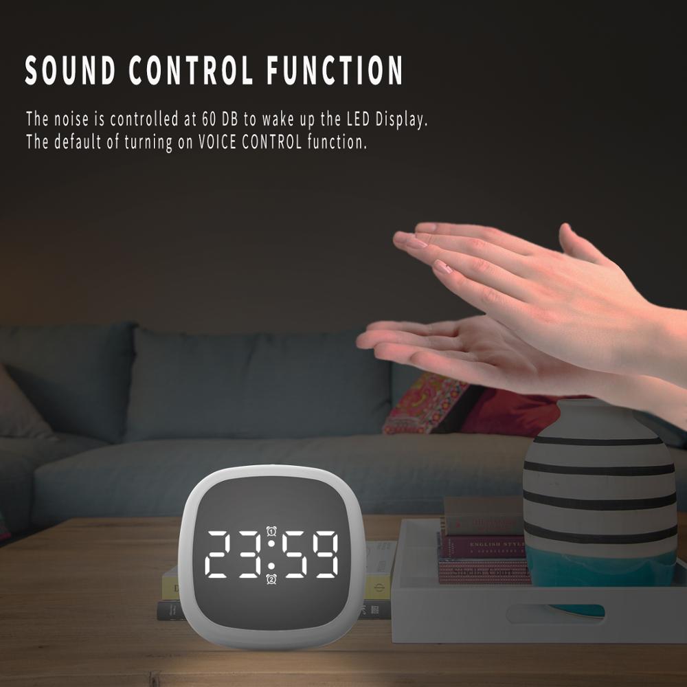 Voice Control Mirror Table Clock Home Decoration Snooze Desk Alarm Clock LED Digital Electronic